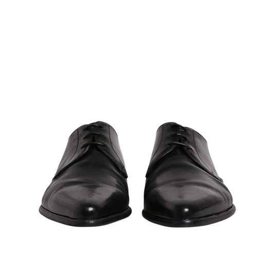 Dolce & Gabbana Black Leather Lace Up Men Derby Formal Shoes