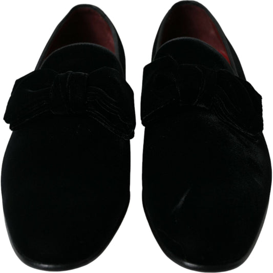 Dolce & Gabbana Black Velvet Loafers Formal Dress Shoes