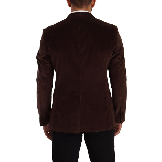 Dolce & Gabbana Brown Corduroy Slim Fit Coat DG Logo Blazer