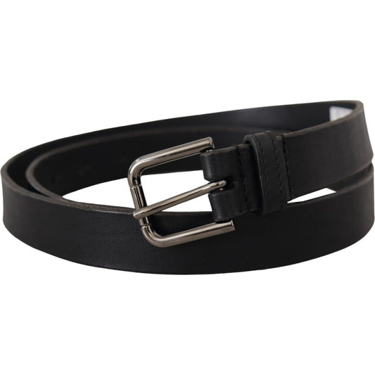 Dolce & Gabbana Black Calf Leather Silver Tone Logo Metal Buckle Belt