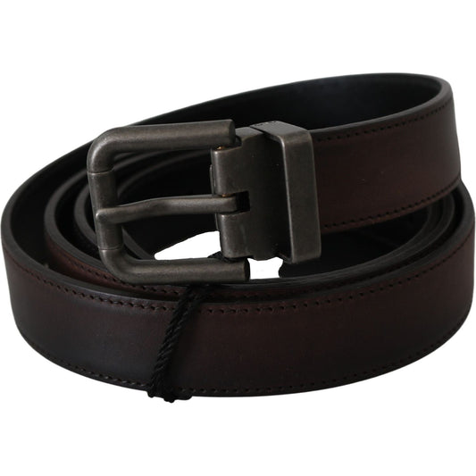 Dolce & Gabbana Solid Brown Leather Gray Buckle Belt