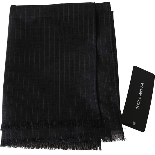 Dolce & Gabbana Gray 100% Wool Striped Pattern Wrap Scarf