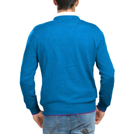 La Martina Blue Wool Men Sweater with Half Zip Closure