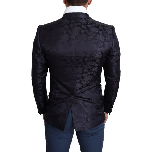 Dolce & Gabbana Blue Floral Jacquard Silk Coat MARTINI Blazer