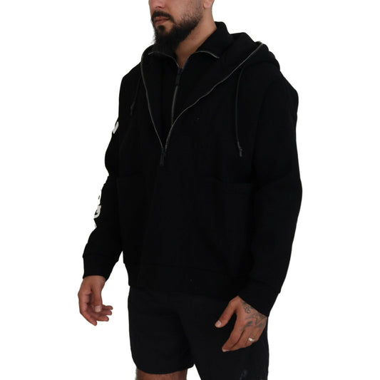 Dsquared² Black Cotton Hooded Printed Men Pullover Sweater