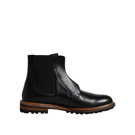 Dolce & Gabbana Black Leather Chelsea Mid Calf Men Boots Shoes