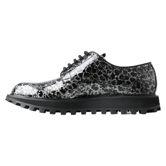 Dolce & Gabbana Black White Derby Patent Leather Shoes