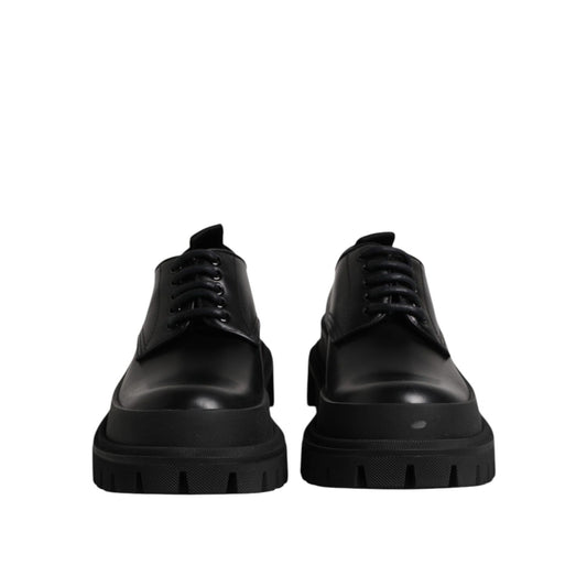 Dolce & Gabbana Black Leather Lace Up Derby Men Dress Shoes