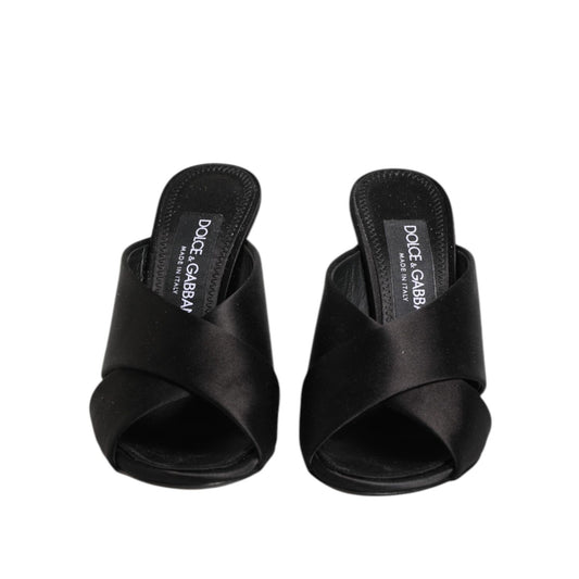 Dolce & Gabbana Black Leather Heels Slides Sandals Shoes