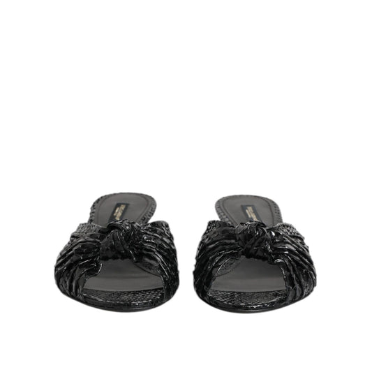 Dolce & Gabbana Black Leather Slides Flats Beachwear Shoes