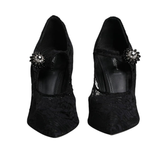 Dolce & Gabbana Black Lace Crystals Mary Jane Pumps Shoes