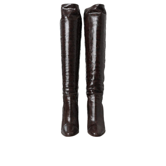 Dolce & Gabbana Brown Exotic Leather Heels High Boots Shoes