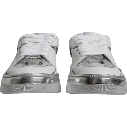 Dolce & Gabbana White Silver Leather Low Top Sneakers Shoes