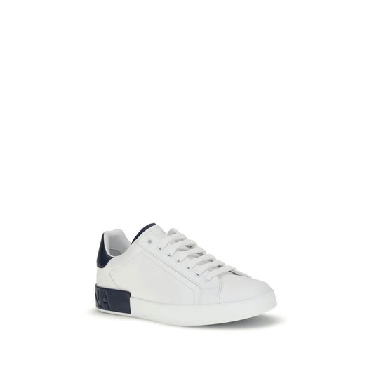 Dolce & Gabbana White Calf Leather Bos Taurus Low Top Sneakers