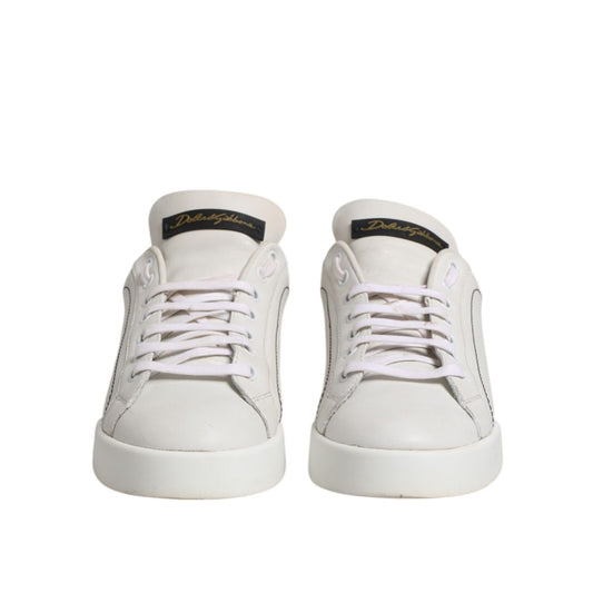 Dolce & Gabbana White Gold Leather Low Top Sneakers Shoes