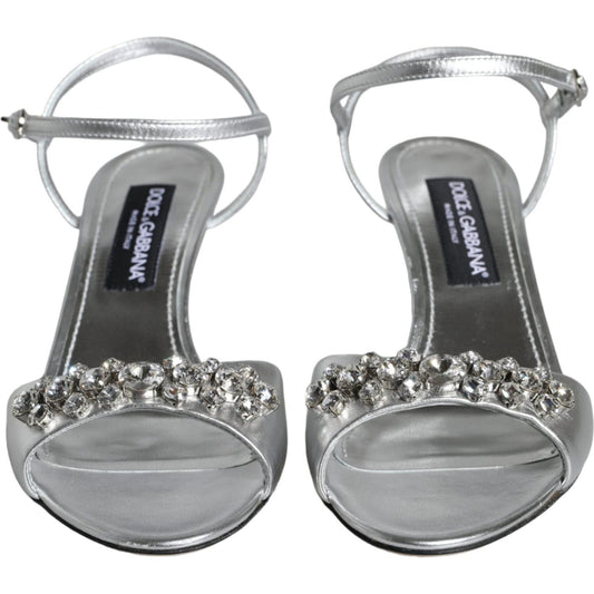 Dolce & Gabbana Silver Crystal AnkleStrap Keira Sandals Shoes