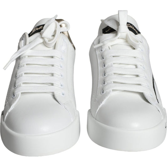 Dolce & Gabbana White Gold Portofino Low Top Leather Sneakers Shoes