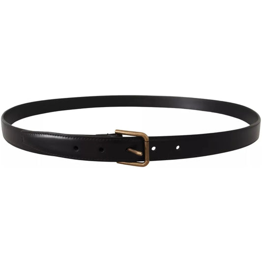 Dolce & Gabbana Black Classic Calf Leather Vintage Metal Buckle Belt