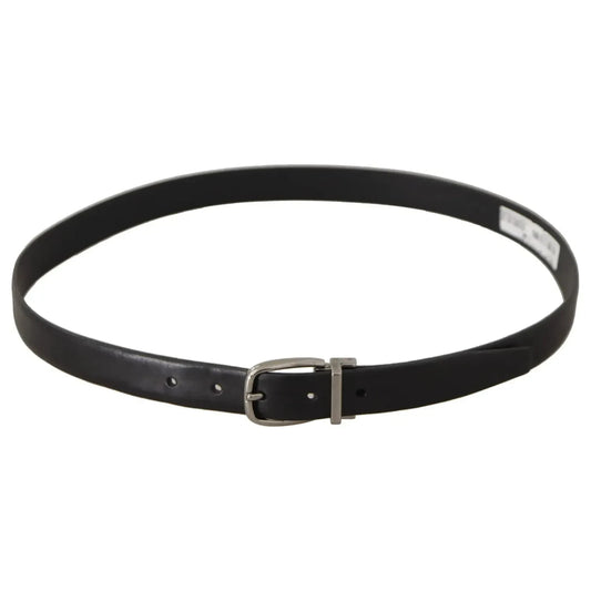 Dolce & Gabbana Black Classic Leather Silver Metal Buckle Belt
