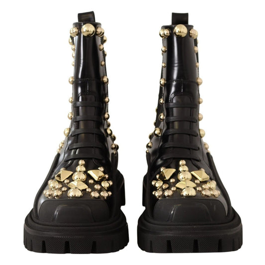 Dolce & Gabbana Black Leather Studded Combat Boots