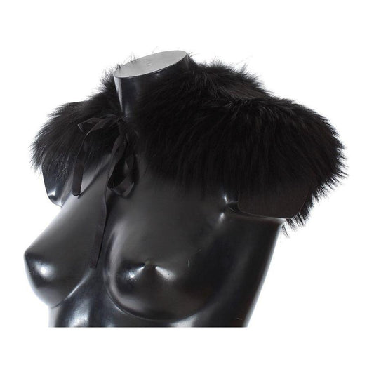 Dolce & Gabbana Black Fox Fur Shoulder Wrap Cover Collar Scarf