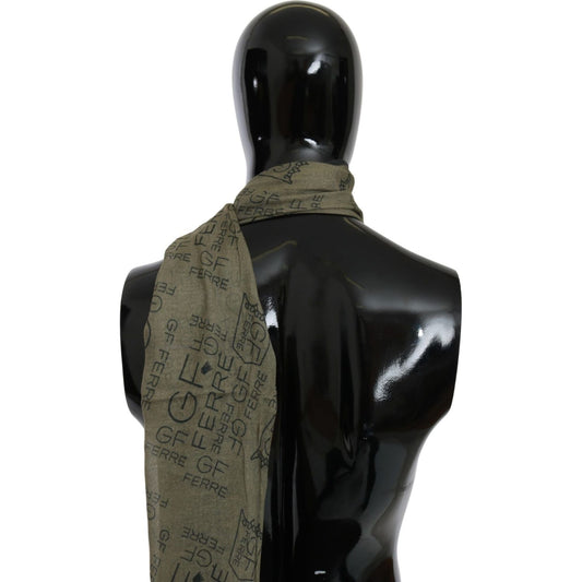GF Ferre Green Wool Viscose Foulard Patterned Branded Scarf