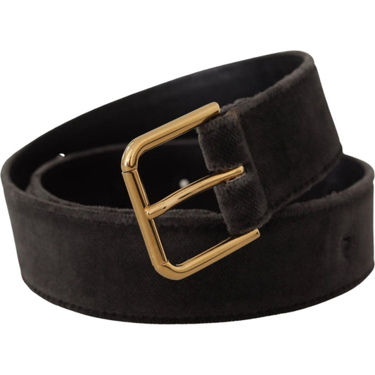 Dolce & Gabbana Brown Velvet Bronze Vintage Logo Metal Buckle Belt