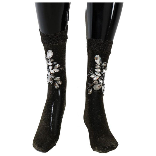 Dolce & Gabbana Black Knitted Floral Clear Crystal Socks