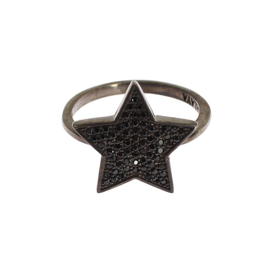 Nialaya Black CZ Star 925 Silver Womens Ring