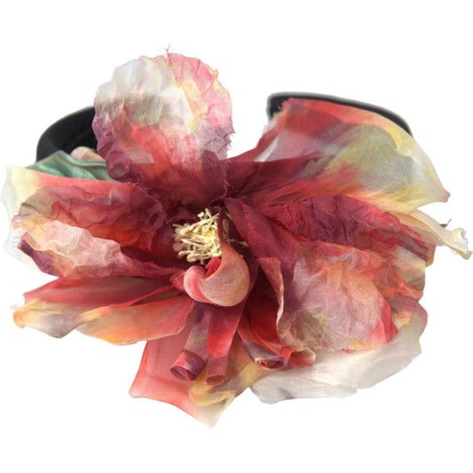 Dolce & Gabbana Black Floral Applique Silk Women Headband Diadem