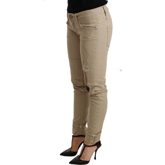 Costume National Beige Straight Leg Denim Pants Stretch Jeans