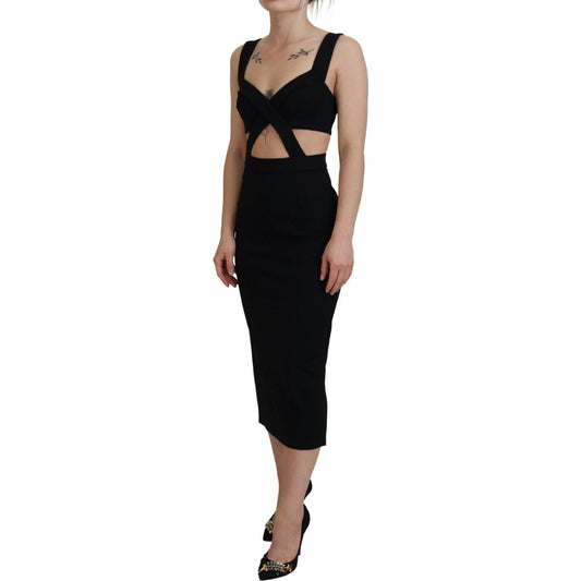 Dolce & Gabbana Black Viscose Bodycon Sheath Midi Dress