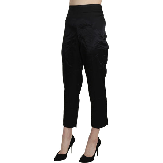 BENCIVENGA Black High Waist Straight Cropped Dress Trouser Pants