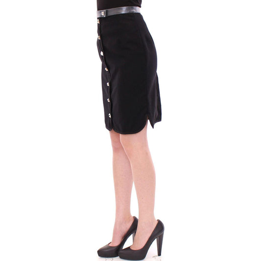 Corrado De Biase Black Metal Buttons Cotto Wool Skirt
