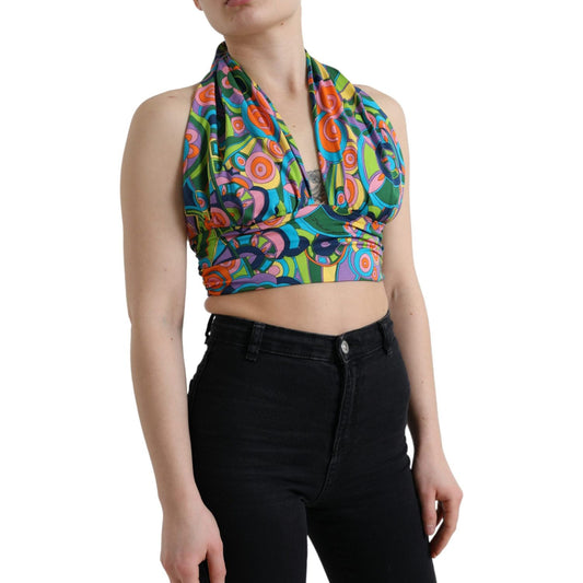 Dolce & Gabbana Multicolor Halter Sleeveless Cropped Tank Top