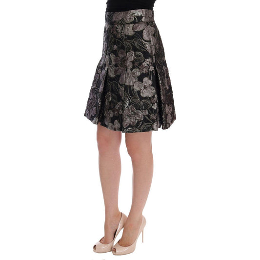 Dolce & Gabbana Black Silver Brocade Floral Skirt
