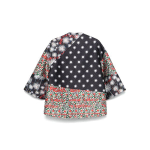 black/multicolour twill weave mix print crossover neck drop shoulder half-length sleeves open front full lining straight hem Printed kimono Size and Fit - This piece fits true to size. We recommend you get your regular size. Model is 1,75m / 5ft 8in wearing size 40 (IT)
