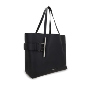 black T-bar fastening concealed magnetic fastening T-Bar leather tote bag Size and Fit - Width 14,57 in / 37 cm Height 12,6 in / 32 cm Depth 6,1 in / 15,5 cm Handle 9,84 in / 25 cm