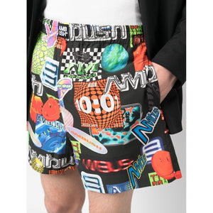 graphic-print elasticated-waistband shorts from AMBUSH featuring multicolour, cotton-lyocell blend, all-over graphic print, elasticated waistband, logo patch to the front, two side slit pockets and thigh-length. This item contains at least 50% materials which are certified or widely recognised as having a lower environmental impact through production and/or manufacturing processes that reduce water consumption and the use of harmful chemicals, or re-use by-products of the production process.. Learn more about what makes a product Conscious on our Conscious Criteria page. Printed shorts Size and Fit - This piece fits true to size. We recommend you get your regular size. Model is 1,84m / 6ft 1in wearing size M