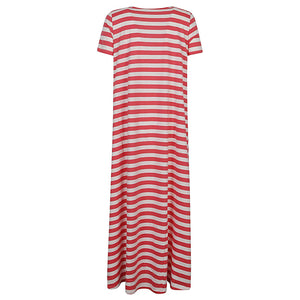 Long striped dress, short sleeves, crew neck and straight hem. Striped cotton long dress Size and Fit - This piece fits true to size. We recommend you get your regular size. Model is 1,75m / 5ft 8in wearing size S