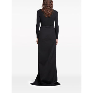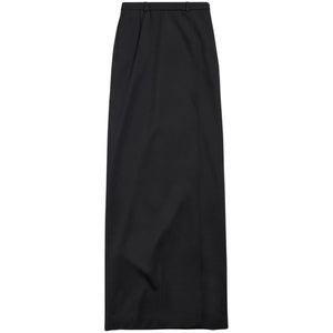 black high-waisted belt loops concealed side zip fastening tailored cut floor-length side slit Wool midi skirt Size and Fit - This piece fits true to size. We recommend you get your regular size. Model is 1,75m / 5ft 8in wearing size 36 (FR)
