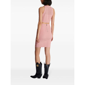 pink knitted construction monogram pattern crew neck sleeveless ribbed trim straight hem Monogram halterneck top Size and Fit - This piece fits true to size. We recommend you get your regular size. Model is 1,75m / 5ft 8in wearing size 36 (FR)