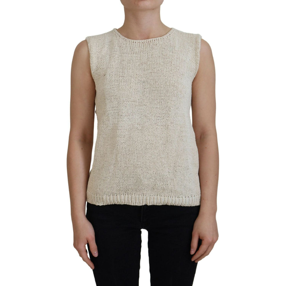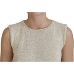 PINK MEMORIES Beige Cotton Blend Sleeveless Round Neck Tank Top