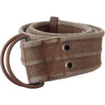 is crafted from brown leather canvas, this classic belt featuring rustic-tone hardware and a round buckle fastening.