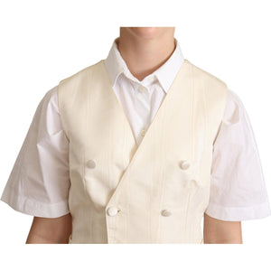 Dolce & Gabbana Beige Silk Sleeveless Waistcoat Vest