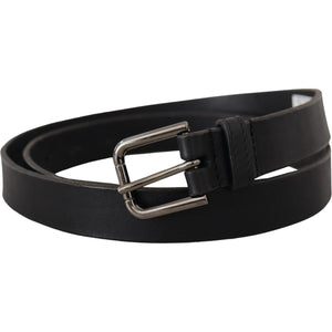 Dolce & Gabbana Black Calf Leather Logo Engraved Metal Buckle Belt