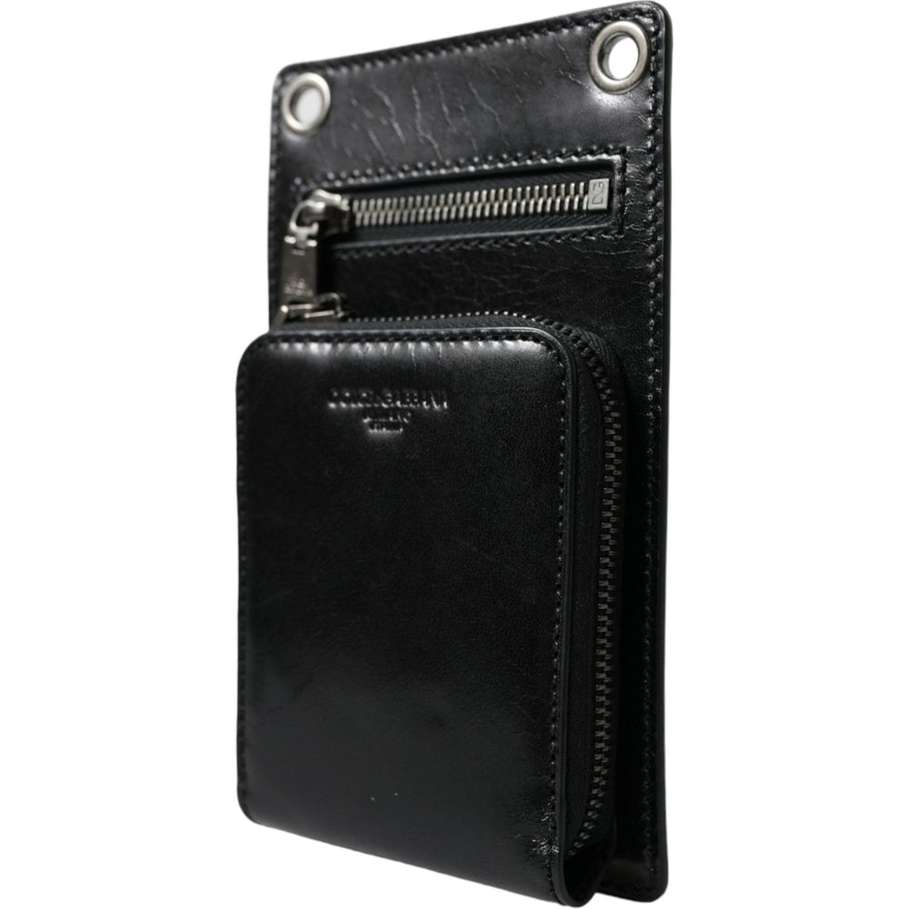 Dolce & Gabbana Wallet Black Horse Leather Zip Logo Cross Body Phone Slot