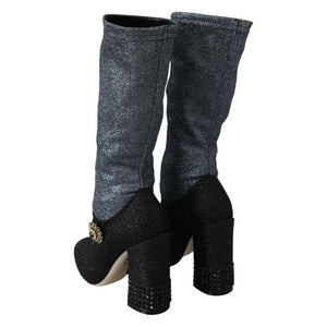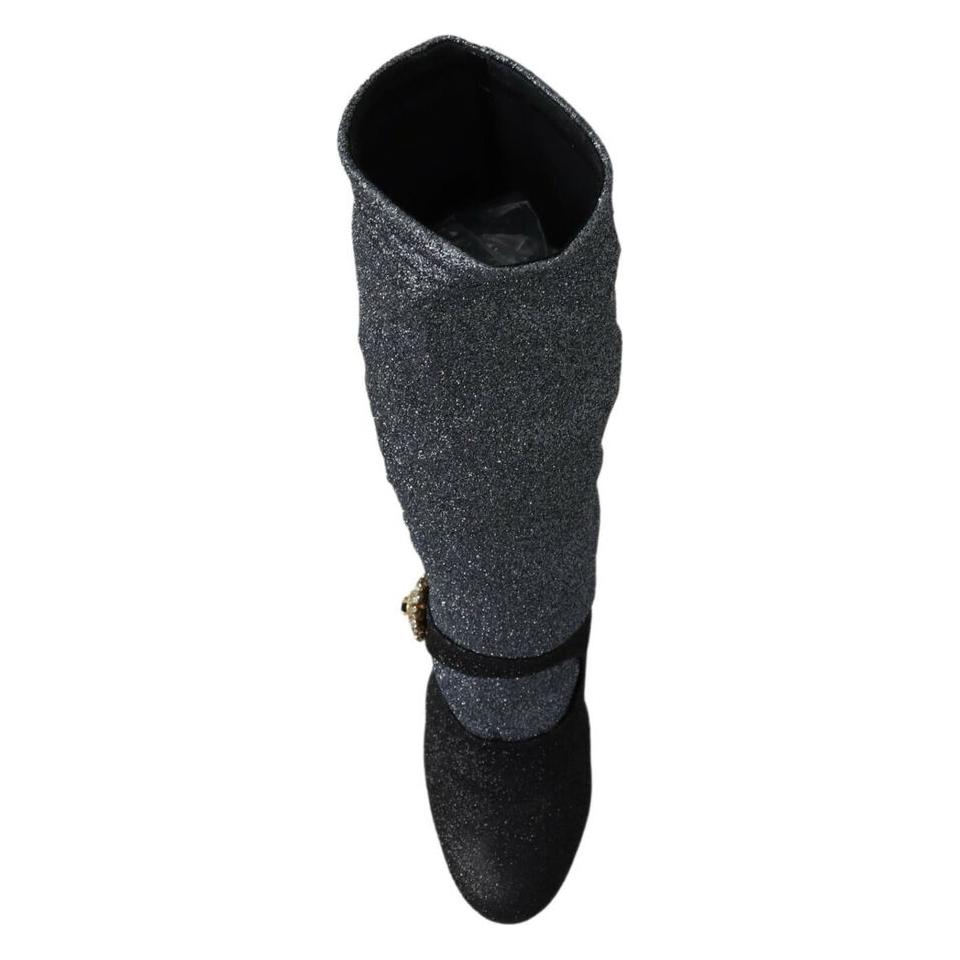 Dolce & Gabbana Black Crystal Mary Janes Booties Shoes