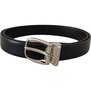Dolce & Gabbana Black Leather Formal Silver Metal Buckle Belt