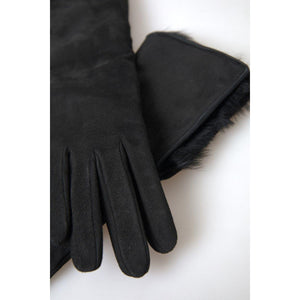 Dolce & Gabbana Black Leather Fur Elbow Length Gloves